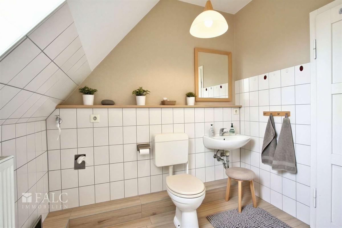Die Wohnfläche beträgt etwa 50 m². Die vorhandenen Dachgauben verleihen der Wohnung einen gemütlichen Charakter. Das verlegte Parkett unterstützt diesen Eindruck. Das funktionale Wannenbad ist hell gefliest.