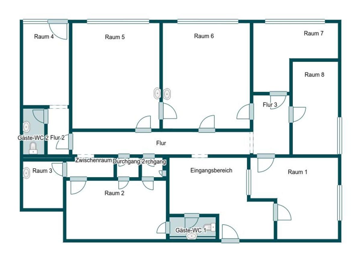 Die derzeitige Raumaufteilung umfasst einen zentralen Eingangsbereich mit zwei Durchgängen, die sich ideal als Umkleidebereiche nutzen lassen. Darüber hinaus stehen insgesamt sieben potenzielle Behandlungsräume bzw. Büroräume zur Verfügung. Ergänzt wird die Fläche durch ein Patienten- bzw. Besucher-WC sowie einen separaten Bereich mit WC und zusätzlichem Raum, der sich hervorragend als Aufenthaltsraum für Mitarbeiter eignet.