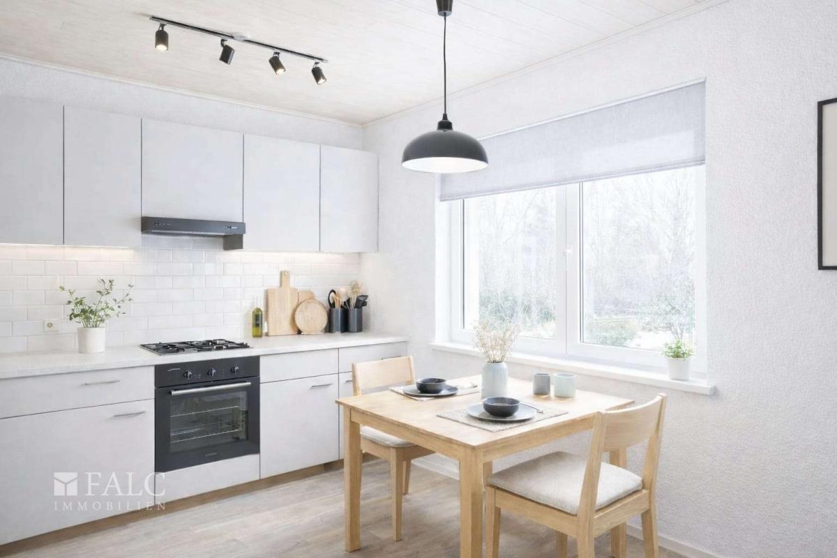 Die großzügige, helle Küche bietet ausreichend Platz für den täglichen Bedarf und lädt zum gemeinsamen Kochen ein. Das Badezimmer ist mit einer barrierefreien Dusche ausgestattet und ermöglicht komfortables Wohnen auch im fortgeschrittenen Alter. Einige Fenster sind mit Jalousien versehen.