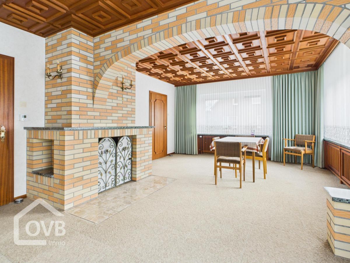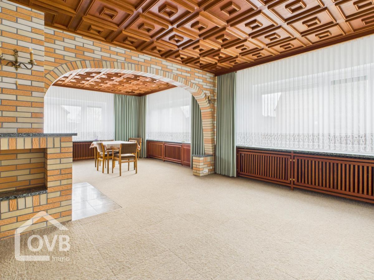 Bereits beim Betreten des Hauses vermittelt die gepflegte Diele einen einladenden Eindruck. Das großzügige Wohn- und Esszimmer erstreckt sich über die gesamte Hausbreite und bietet durch einen Rundbogen eine angenehme Aufteilung der Bereiche. Ein offener Kamin sorgt hier für eine behagliche Atmosphäre.