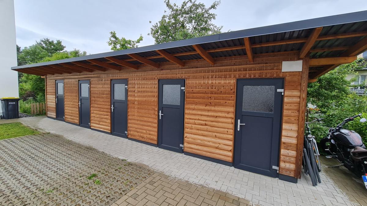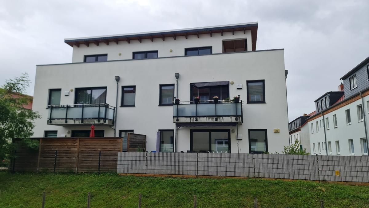 Der im Jahr 2021 fertig gestellte Neubau hat ebenfalls 5 Wohneinheiten zwischen 70 und 125 m² Wohnfläche und wurde nach den neuesten energieeffizienten Gesichtpunkten gebaut. Jede Wohneinheit hat eine separate Be- und Entlüftungsanlage, die für ein sehr gutes Raumklima sorgt. Beim Bau des Hauses wurde auf einen Keller verzichtet und stattdessen wurden im Innenhof 5 geräumige Schuppen gebaut. Alle Wohnungen haben Balkon oder Terrasse, im Penthouse fast umlaufend.