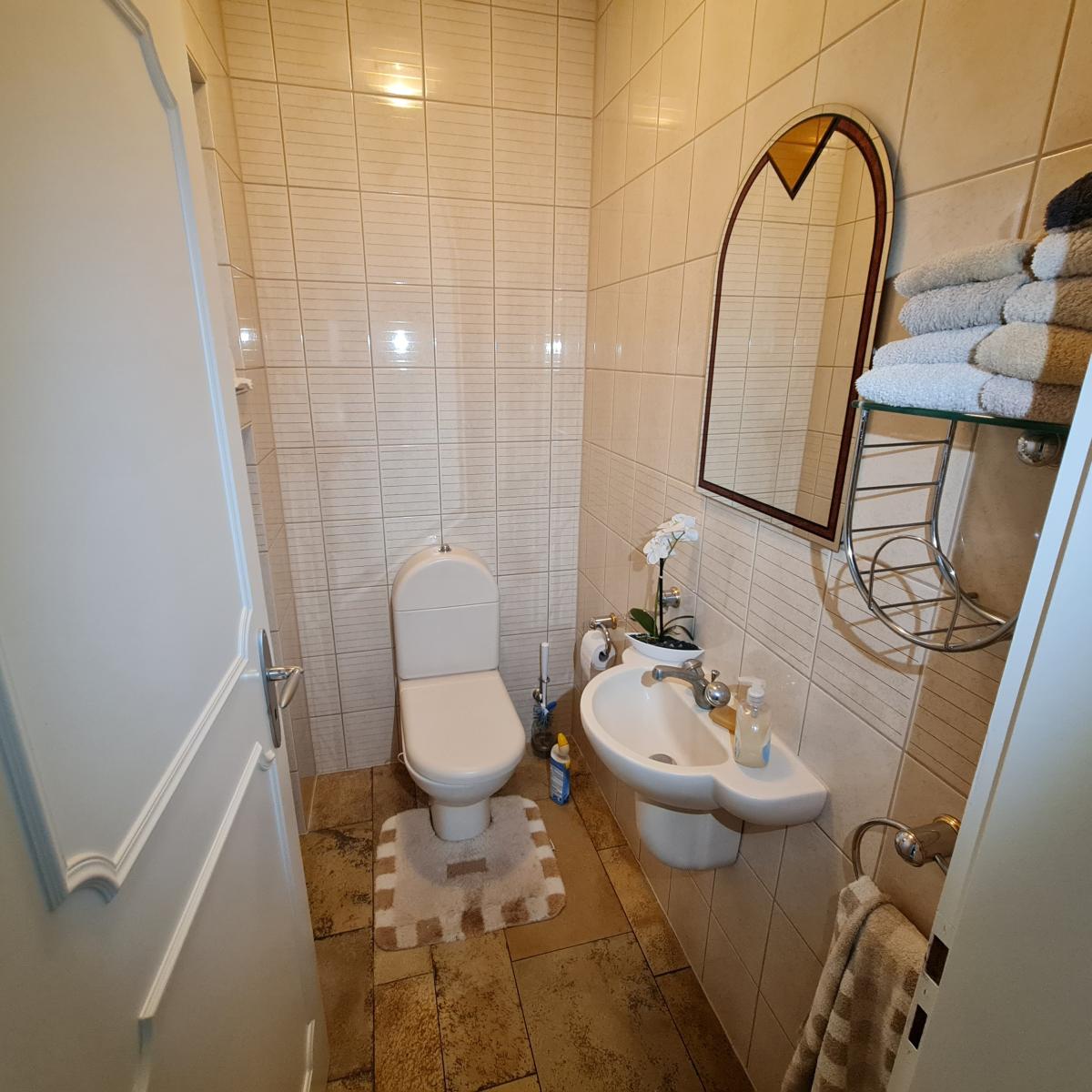 Im Haus befinden sich fünf Schlafzimmer, darunter ein großzügiges Hauptschlafzimmer mit Ankleidebereich. Zwei moderne Bäder und drei separate WC sorgen für den nötigen Komfort im Alltag.
