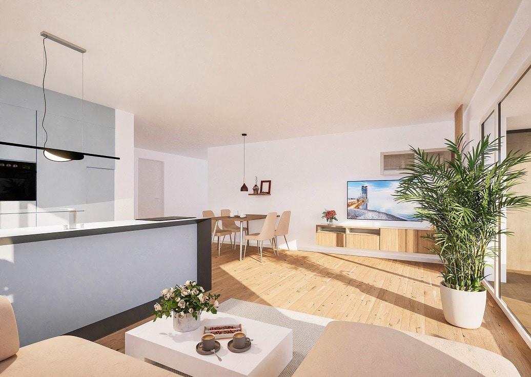 Die Architektur kann sich sehen lassen: moderne Formen, warme Farben und Materialien verbinden sich mit einer hohen Alltagstauglichkeit. Im Haus Nr. 1 entstehen Jeweils 4 Wohnungen ab dem 1. Obergeschoss pro Etage, im Haus Nr. 2 ab dem EG, jeweils mit Größen von 1,5 Zimmer mit einer Wohnfläche von ca. 47 m² bis zu 4 Zimmer mit einer Wohnfläche von ca. 112 m². Die Wärmeversorgung erfolgt über eine zentrale Pallet Heizungsanlage. Alle Fenster und Fenstertüren erfolgen als Kunststoffelement mit Wärmeschutzverglasung, 3-Fach. Die Fußböden werden mit Parkett Eiche Natur vollständig verklebt. Je nach Baufortschritt sind andere Bodenbelege gegen Verrechnung möglich. Für den barrierefreien Zugang gibt es einen Personenaufzug, der sie in jedes Geschoss bringt. Weitere Details entnehmen Sie bitte der Baubeschreibung.