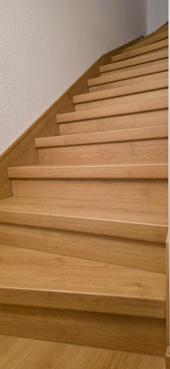 der Einbau einer hochwertigen Echtholztreppe vom "Fachmarkt Hammer", die direkt vom Wohnzimmer in den ersten Stock führt,