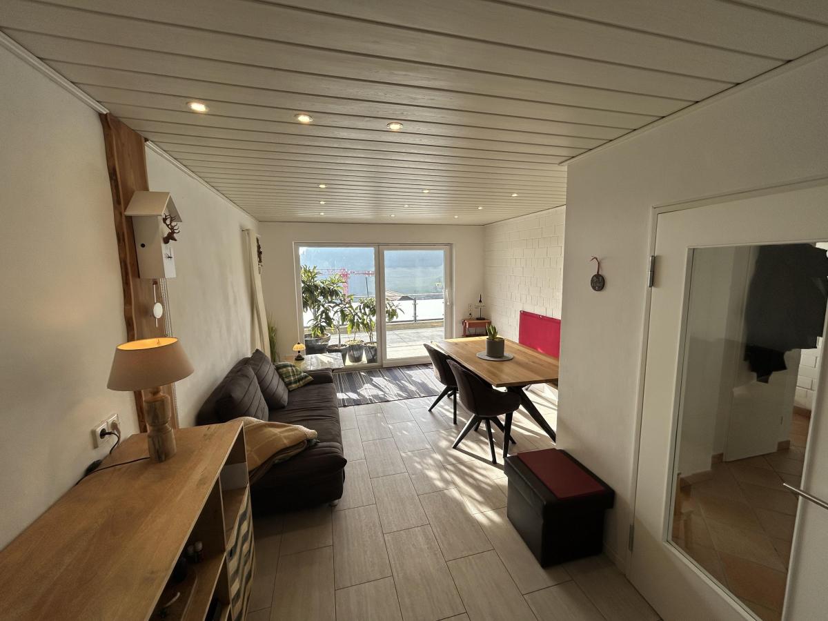 Die Wohnung im EG/OG erstreckt sich über zwei Etagen, hat 6 Zimmer, zwei Bäder, eine Gästetoilette und einen Balkon (21 m²) mit traumhaftem, unverbaubarem Ausblick.