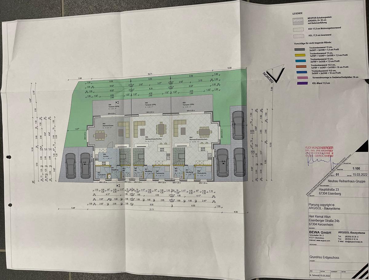 Voll erschlossenes Baugrundstück- Baugenehmigung. f. drei Reihenhäuser od. ihres Traumhauses