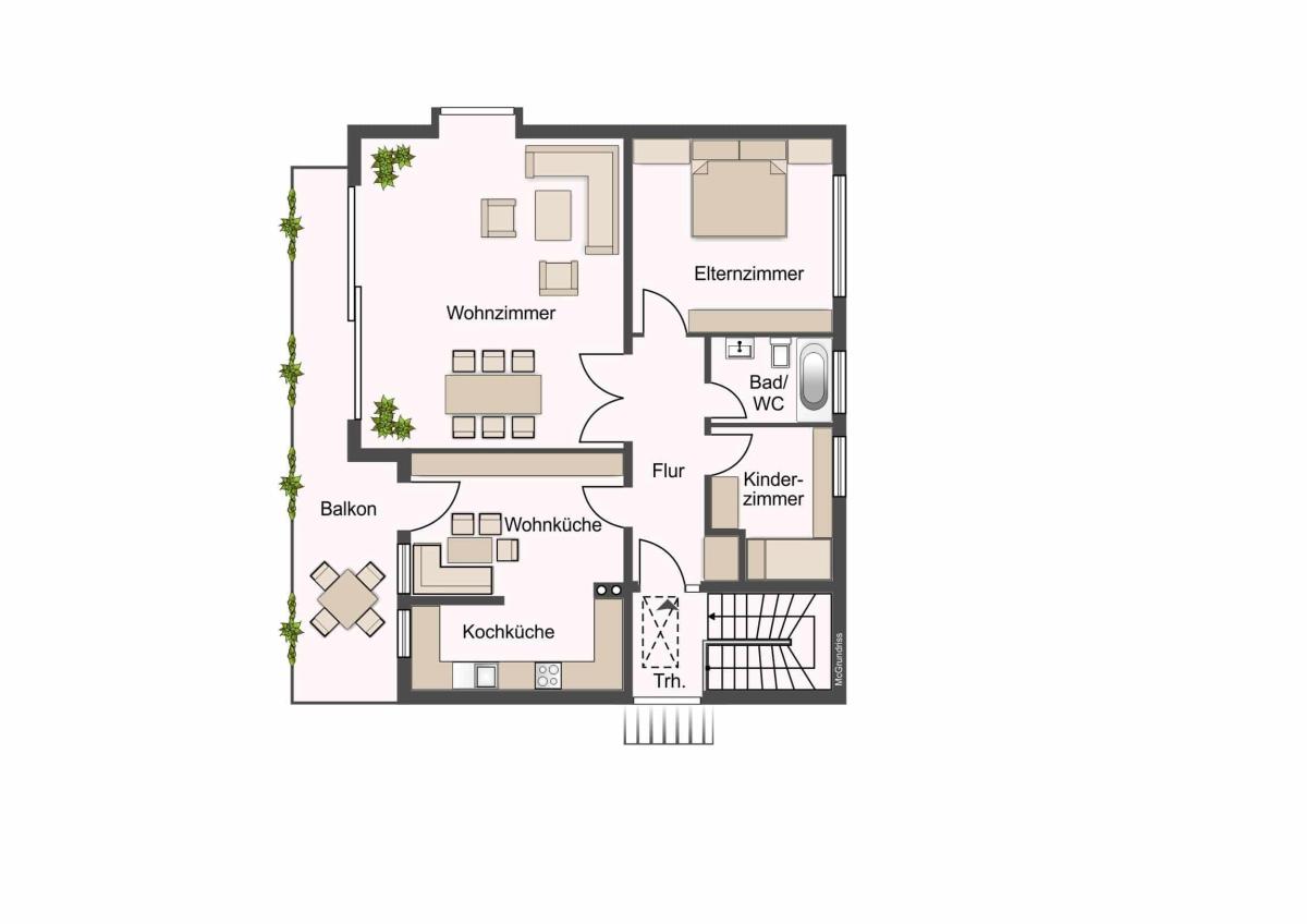 Beide Etagen verfügen jeweils über Küchen- /Essbereich, Bad, Wohnzimmer, Schlafzimmer und Kinderzimmer, Terrasse im Erdgeschoss & Balkon im Obergeschoss.