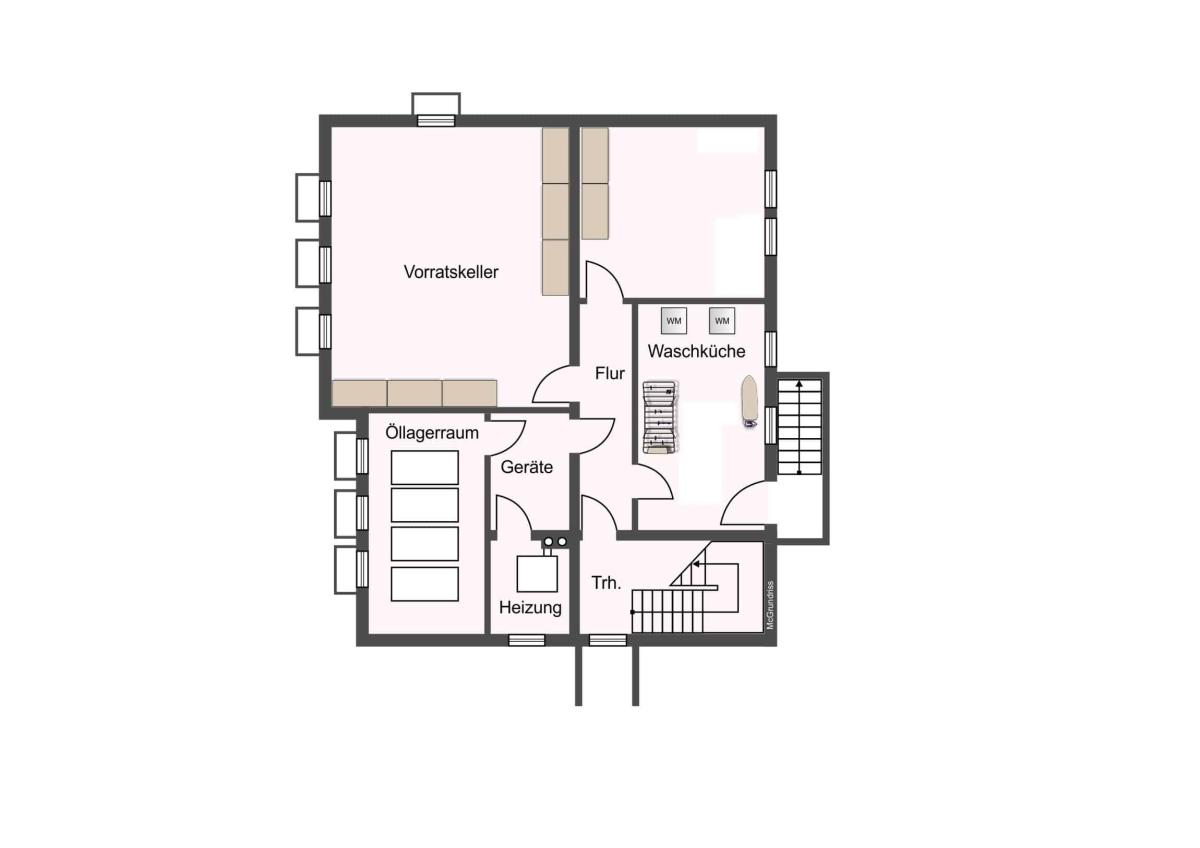 Der Keller bietet ausreichend Lagerflächen und eine Waschküche mit Ausgang in den Garten.