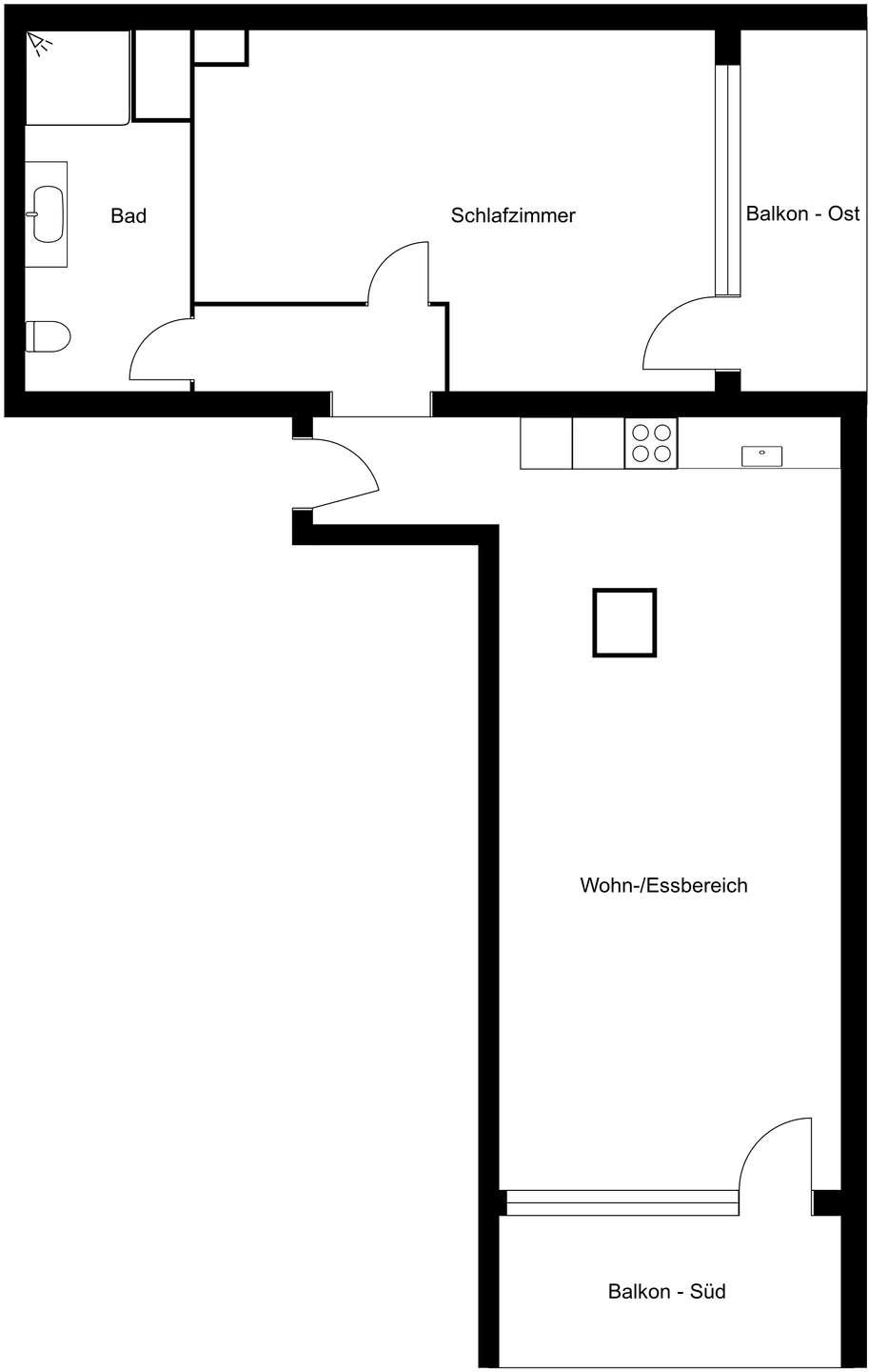 Zwei Balkone, zwei Ausrichtungen: Morgensonne im Schlafzimmer (Ostbalkon), Abendsonne im Wohnbereich (Südbalkon) – hier genießen Sie den ganzen Tag über Licht und Luft.