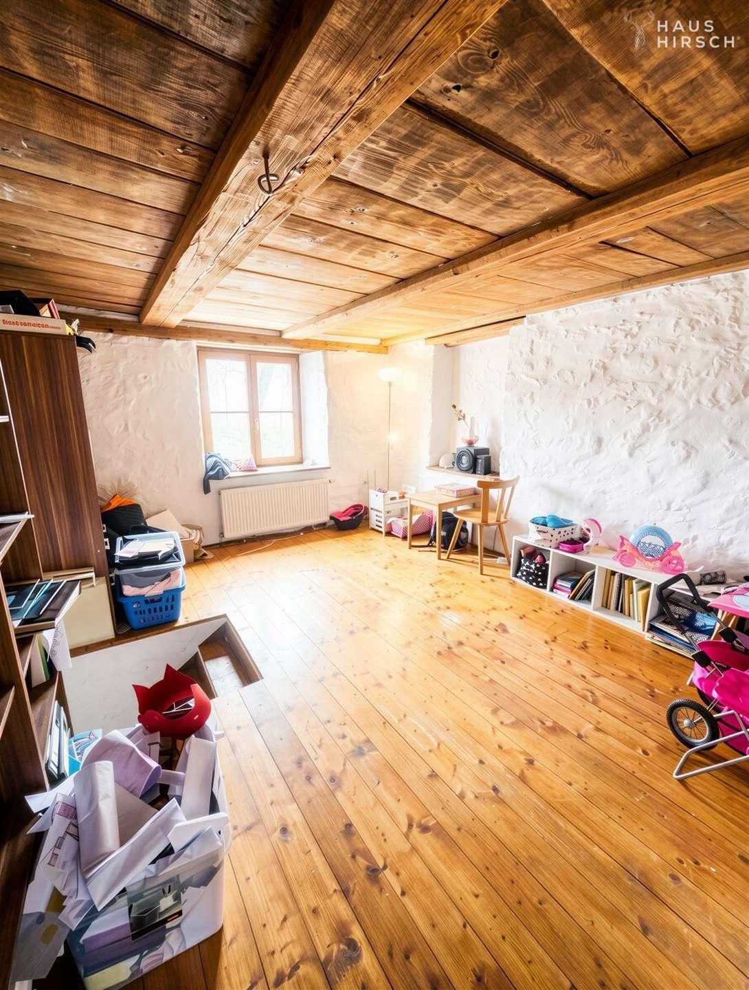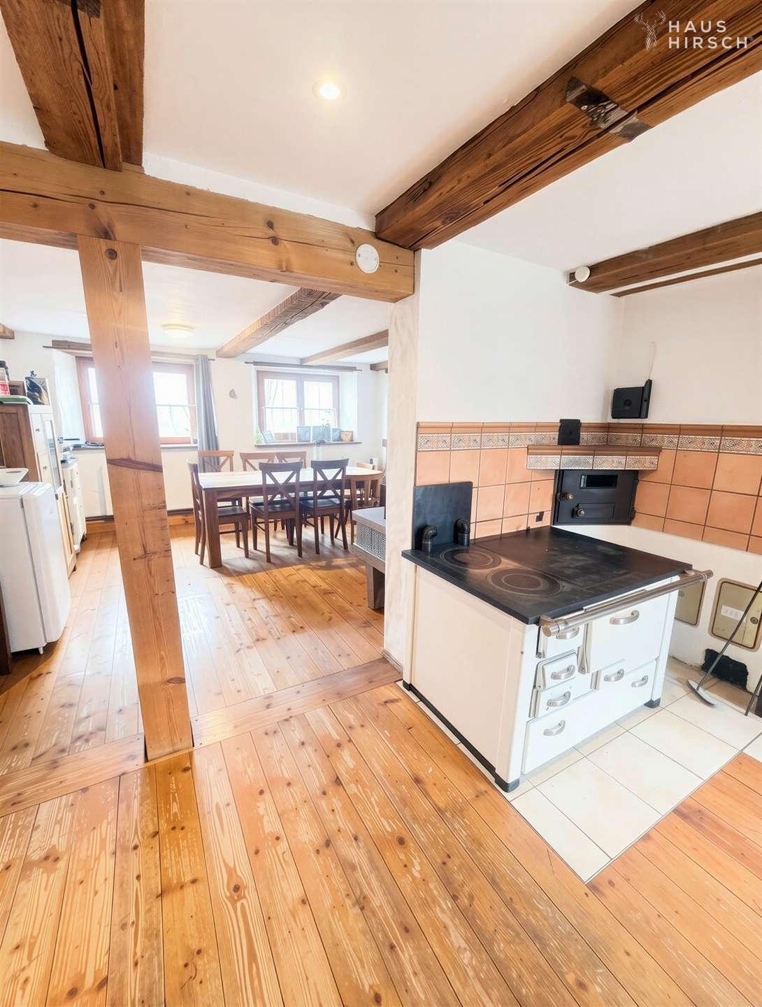 Dieses liebevoll sanierte ehemalige Bauernhaus verbindet historischen Charme mit modernem Wohnkomfort. Der einladende Eingangsbereich führt in ein großzügiges Esszimmer mit Kachelofen und moderner Küche samt zusätzlichem Holzherd. Das helle Wohnzimmer mit Panoramafenster bietet einen schönen Blick in den Garten und öffnet sich nach oben zum Galerieschlafzimmer.