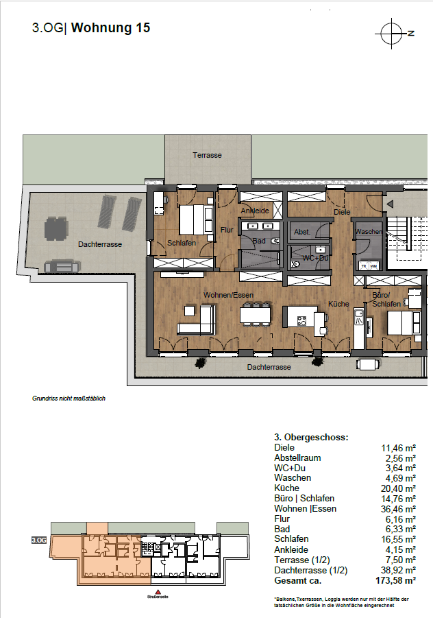 - Wohnung verfügt über eine großzügige Dachterrasse