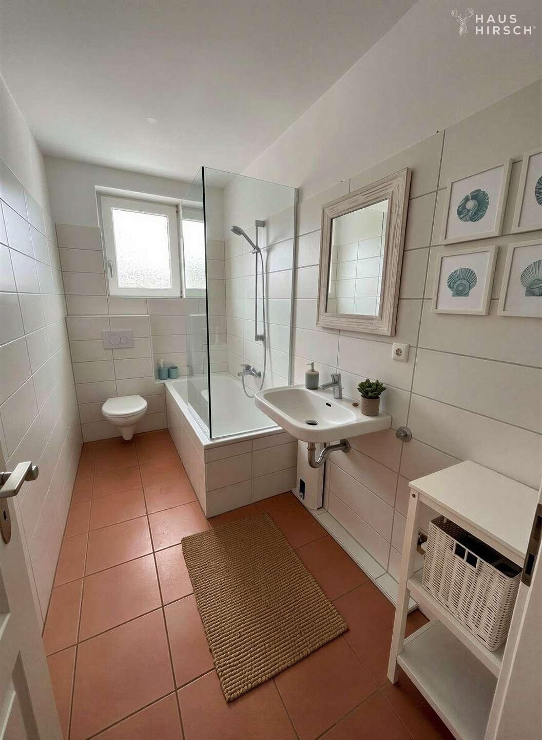 - Moderne Laminatböden und Fliesen sorgen für eine zeitlose und pflegeleichte Optik