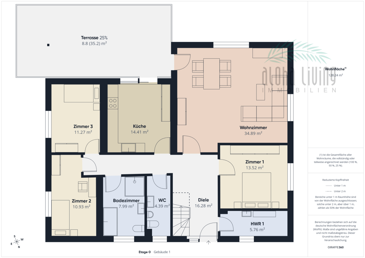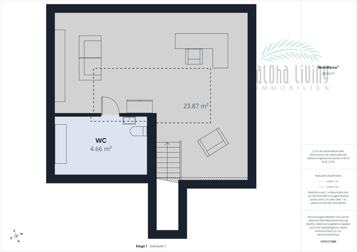 Alle Angaben sind ohne Gewähr und dienen als Erstinformation. Rechtsgrundlage ist der notarielle Kaufvertrag. Irrtümer und der Zwischenverkauf bleiben vorbehalten. Die im Exposé enthaltenen Informationen stammen vom Eigentümer bzw. Dritten und Aloha Living Immobilien® GmbH übernimmt hierfür keine Haftung. Eine Weitergabe des Exposés und der darin enthaltenen Informationen Bedarf unserer Zustimmung.