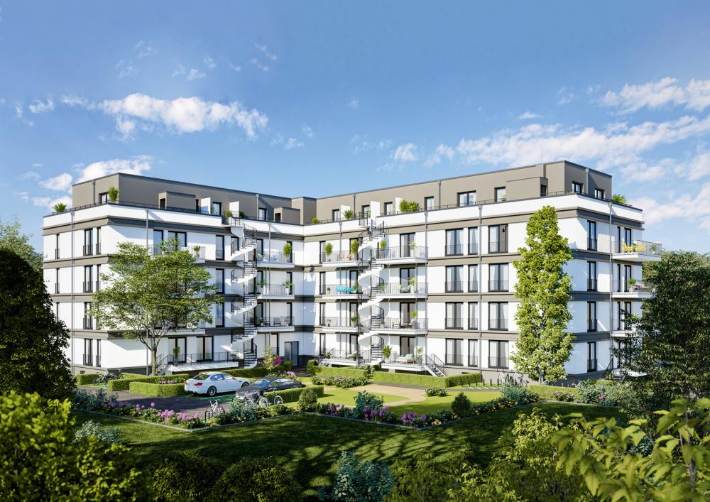 Die klare, elegante Fassadengestaltung und die großzügigen, bodentiefen Fenster – vielfach als französische Balkone ausgeführt – verleihen dem Gebäude eine helle und offene Ausstrahlung. Insgesamt entstehen 51 moderne Wohnungen mit durchdachten Grundrissen und Wohnflächen zwischen ca. 39 m² und 113 m². Damit bietet das Objekt ideale Wohnlösungen für Singles, Paare und Familien gleichermaßen.