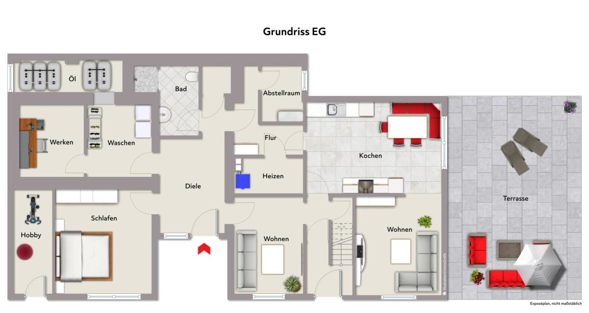 Das Haus besteht aus zwei Wohneinheiten, jeweils mit separatem Eingang und überzeugt durch flexible Grundrisse sowie großzügige Flächen. Die Strom- und Wasserleitungen sind jedoch nicht nach Wohneinheiten getrennt und bedürfen ggfs. einer Anpassung.