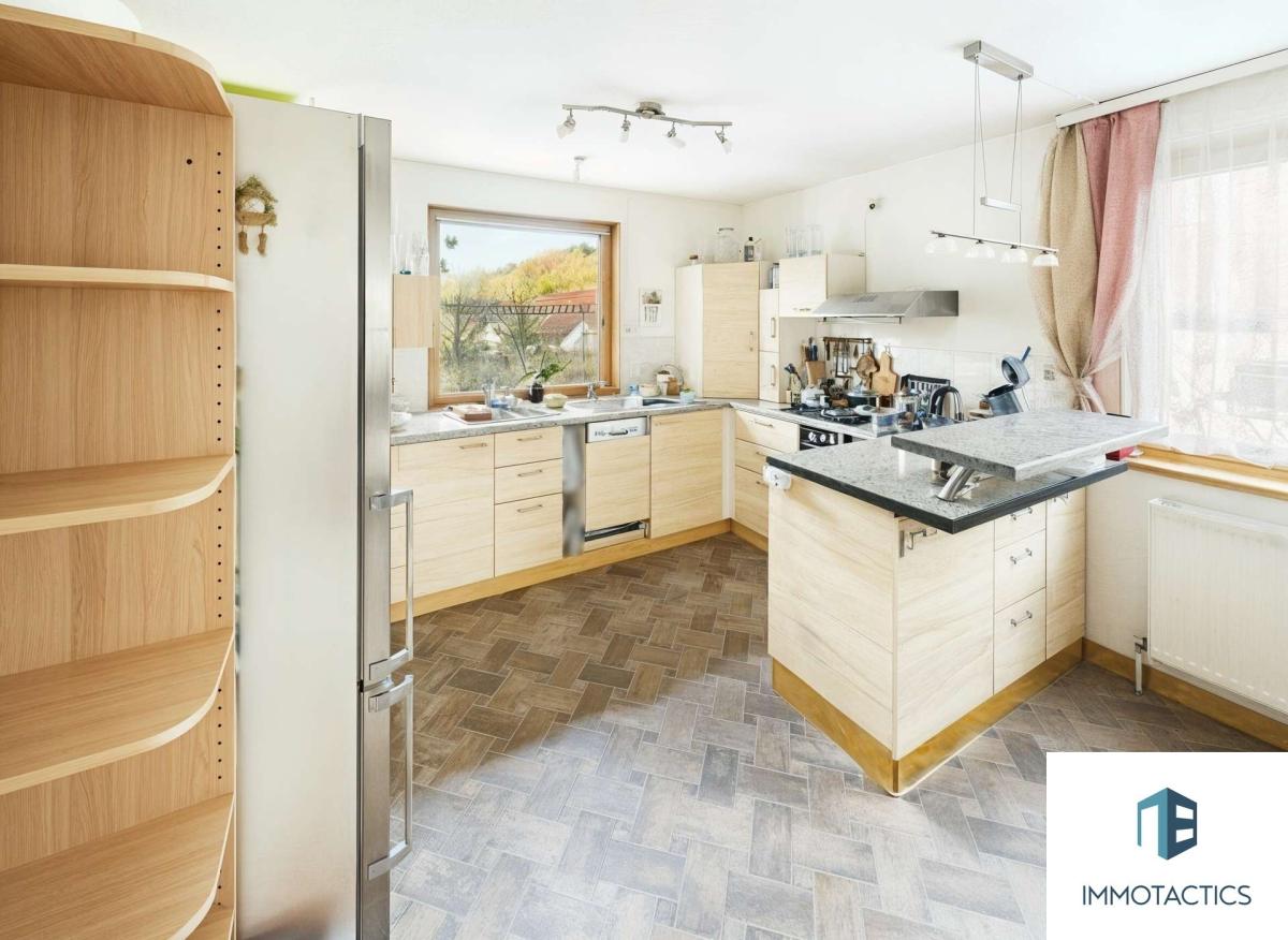 Das Herzstück bildet der großzügige Wohnbereich mit offen gestalteter Küche. Große Fenster und der Blick in den Garten schaffen eine angenehme, freundliche Atmosphäre. Der wasserführende Kaminofen sorgt nicht nur für angenehme Wärme, sondern versorgt zugleich die Heizkörper mit warmem Wasser. Zusätzlich stehen eine Solaranlage mit Speicher sowie eine Klimaanlage mit Heizfunktion zur Verfügung – ein Plus an Komfort.