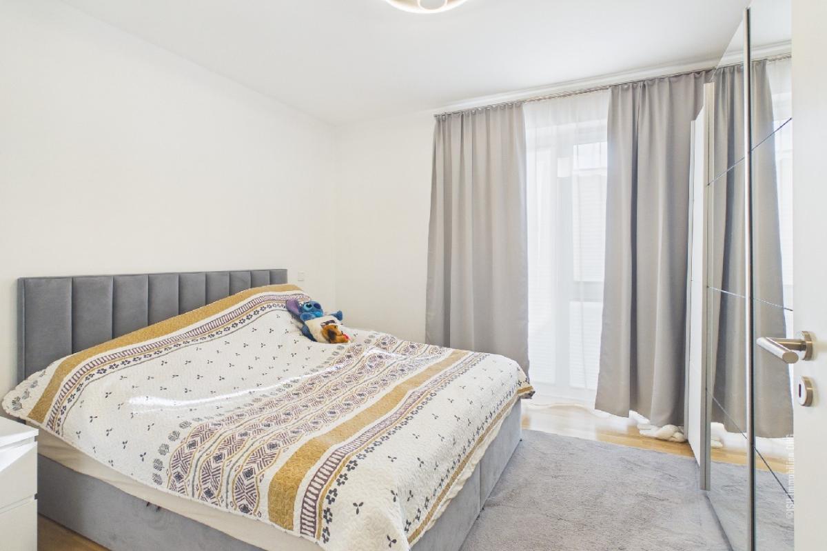 Die Wohnung verfügt über ein großzügiges Duschbad mit Fenster, ein schönes Schlafzimmer mit Stellflächen für einen Kleiderschrank sowie einen Hauswirtschaftsraum mit einem Anschluss für eine Waschmaschine. Der Wohn-Koch-Essbereich ist offen gestaltet und die bodentiefen Fenster sorgen für eine helles und freundliches Raumgefühl. Die Küche ist mit einer modernen Einbauküche und das Duschbad mit moderner Sanitärkeramik ausgestattet.