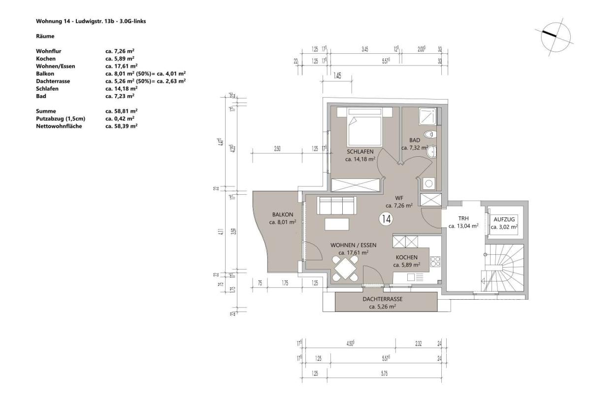 Das Vorderhaus (Ludwigstraße 13a) setzt dabei einen besonderen städtebaulichen Akzent. In enger Abstimmung mit Stadtplanung und Denkmalamt erhält die Fassade bis zum vierten Obergeschoss eine hochwertige Verblendung mit Klinker-Riemen, die dem Gebäude eine repräsentative, langlebige und dem Standort angemessene Präsenz verleiht.