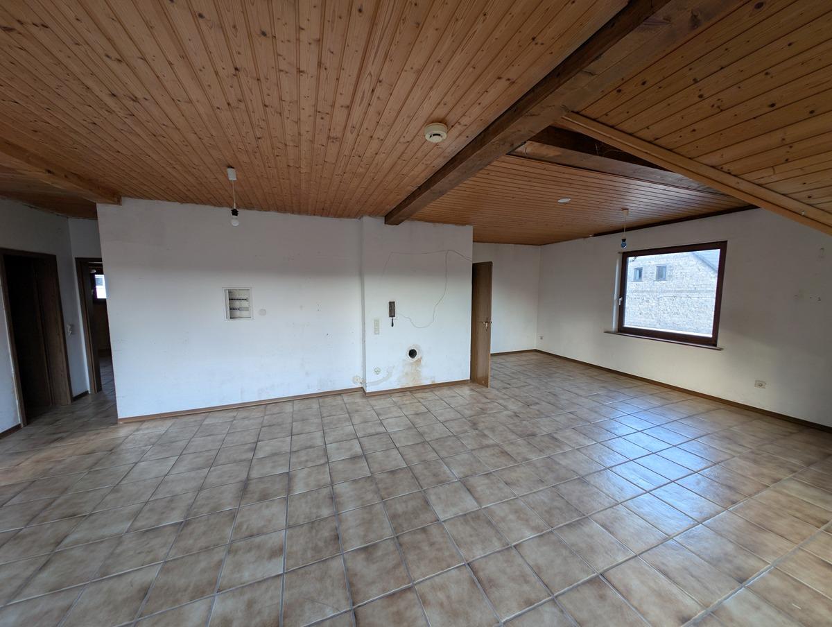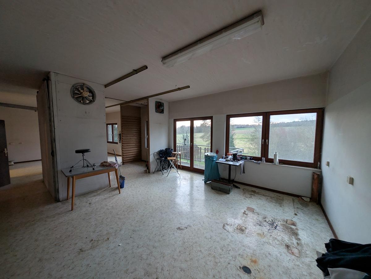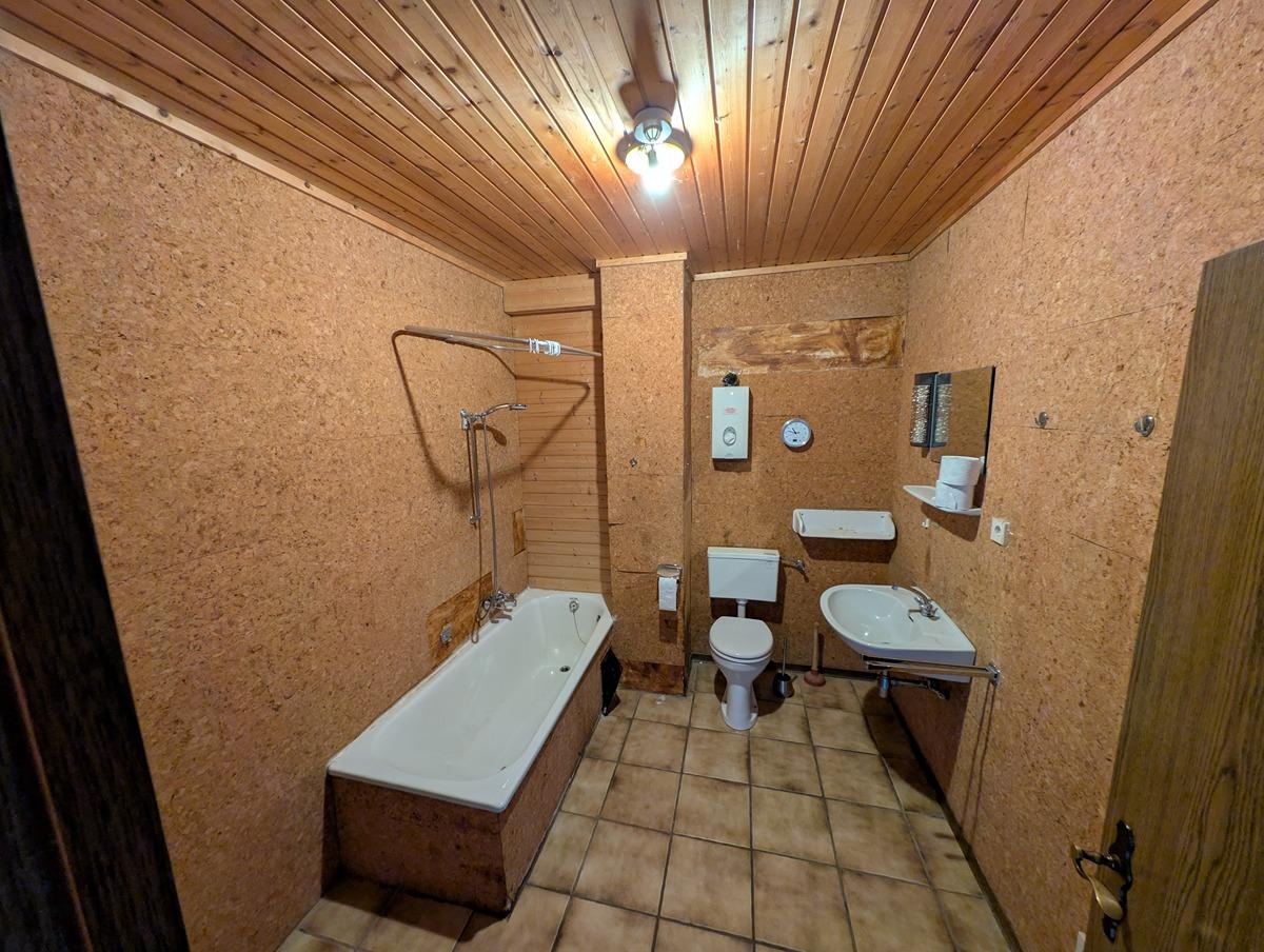 Das Haus wurde im EG (ca.110m²)als Gewerbe zur Nudelproduktion genutzt und im OG (ca. 110m2) zum Wohnen genutzt. Das Haus ist teilunterkellert und bietet noch Platz zur Erweiterung in dem man die Gewerbefläche zum Wohnraum umbaut oder den Dachspeicher ausbaut. Das Haus wurde über einen Pelletofen und mit Holzöfen beheizt. Die Wasserinstallation wurde mit Kupferleitungen ausgeführt, die Elektroinstallation ist aufgetrennt nach EG (für die Gewerbefäche) und OG (Wohneinheit). Also auch gut geeignet zur Untervermietung.