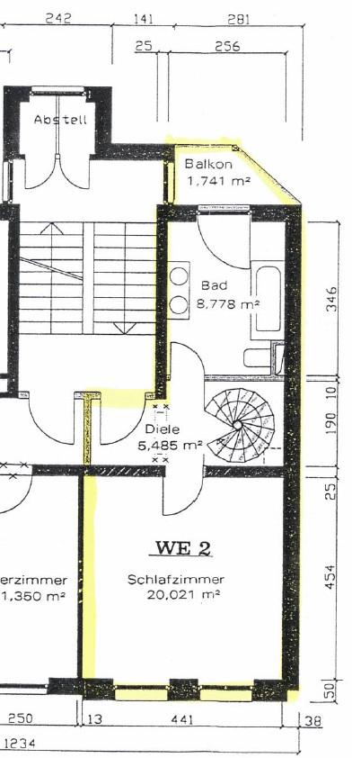 Zur Wohnung gehören ein Abstellraum in Treppenhaus und ein Kellerabteil.