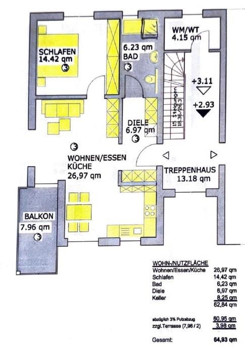 Auf ca. 64 m² Wohnfläche bietet die Wohnung einen gut geschnittenen Grundriss mit einem offenen Wohn- und Essbereich, einer modernen Einbauküche, einem Schlafzimmer und einem hell gefliesten Bad. Der überdachte Balkon lädt zum Entspannen im Freien ein und erweitert den Wohnraum in den warmen Monaten.