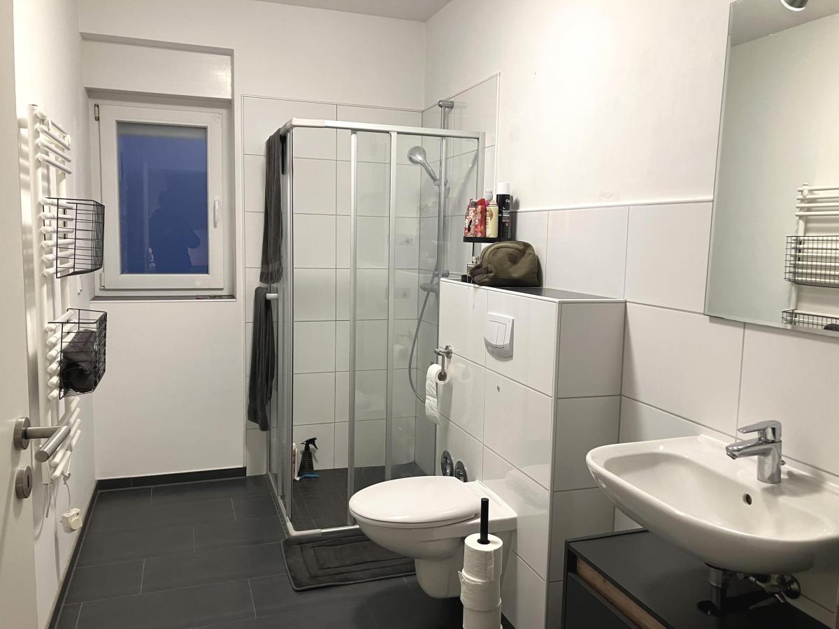 Zur Ausstattung gehören Fußbodenheizung, elektrische Rollläden, pflegeleichte Laminat- und Fliesenböden sowie eine Waschküche auf der Etage mit Anschlussmöglichkeiten für Waschmaschine und Trockner. Ein Stellplatz direkt am Haus ist im Angebot enthalten. Weiterhin gehört zur Wohnung ein großzügiger eigener Kellerraum mit Platz für Regale und zum Beispiel ein Fahrrad.