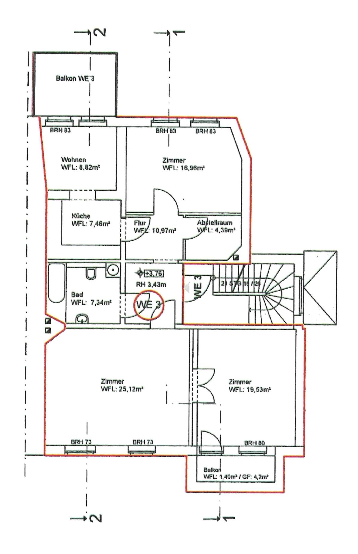 - Innenliegendes Bad, 2022 komplett neu gebaut, mit Dusche, Handtuchheizkörper, WC, Waschtisch und Oberlicht