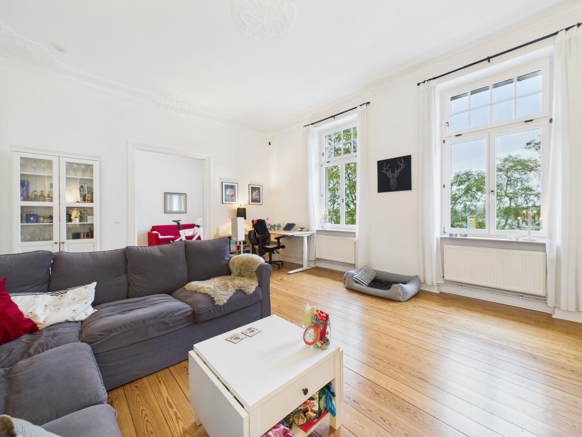 Beide Räume sind durch eine imposante Flügeltür verbunden – ideal als Wohnzimmer mit angeschlossenem Büro-, Gäste- oder Kinderzimmer - Ein PKW-Stellplatz auf dem Grundstück ist exklusiv der Wohnung zugeordnet.