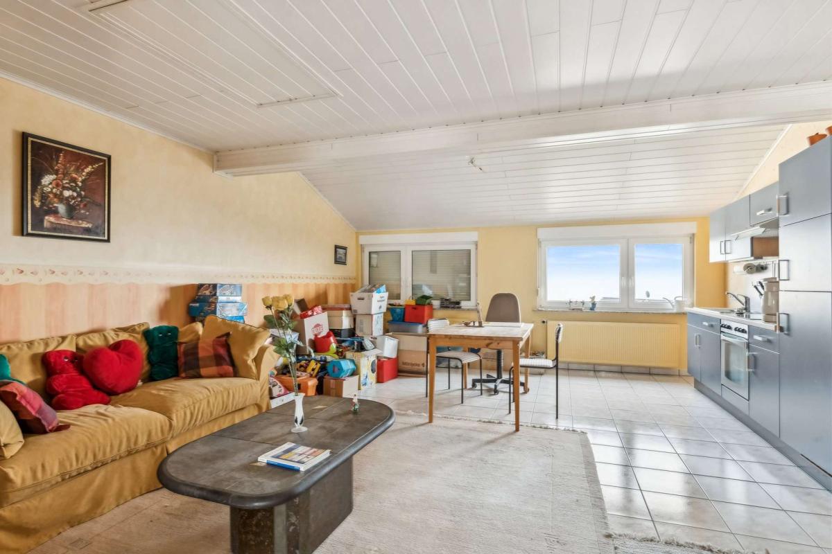 Das ausgebaute Dachgeschoss bietet Ihnen weitere Möglichkeiten. Hier befinden sich ein großer Wohnbereich mit offener Küche, ein Duschbad, ein separater Abstellraum und ein gedämmter Speicher.