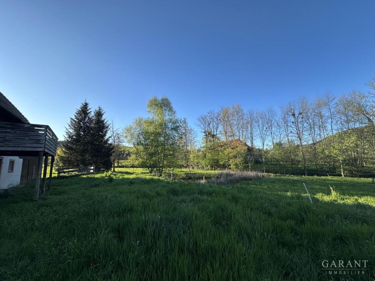 Das Grundstück liegt ringsum abgeschirmt im Grünen, mit einmaligem Ambiente. Die baulichen Anlagen auf dem Grundstück bestehen aus einem Landhaus mit Einliegerwohnung, das derzeit stillgelegt wurde.