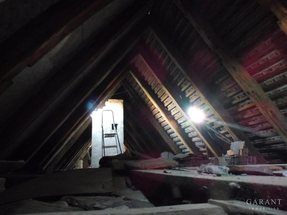 Drei der insgesamt 5 Wohnungen verteilen sich im Obergeschoss und sind über einen Treppenaufgang erreichbar. Dieser führt weiter bis ins Dachgeschoss mit zwei größeren Wohnungen. Ein kleiner Gewölbekeller von ca. 12 qm ist unter dem Hinterhaus vorhanden. Die Wärme- und Warmwasserversorgung erfolgt über eine Erdgas-Zentralheizung.