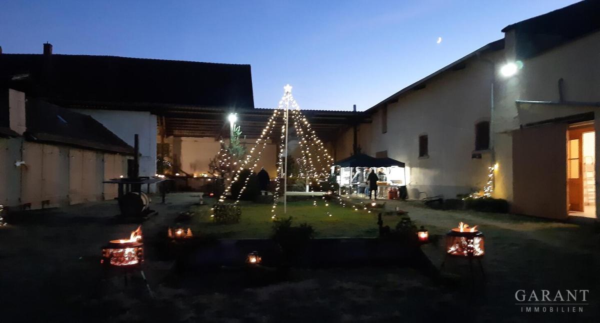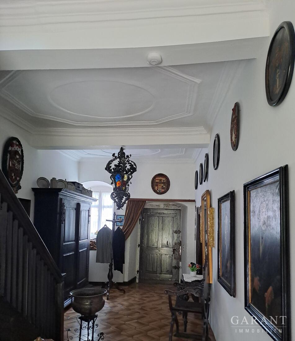 Das Anwesen ist Teil eines ehemaligen Hofguts und präsentiert sich mit herrlichem Innenhof und imposanten Gartenareal.