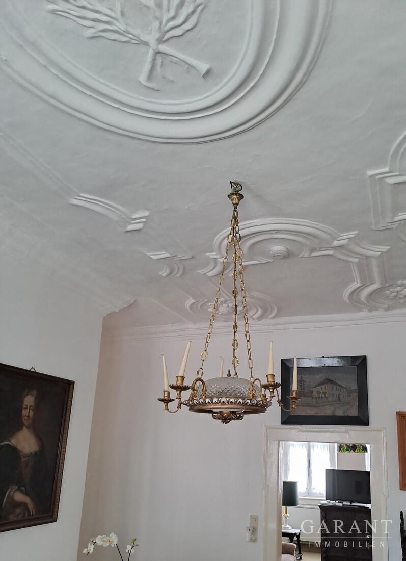 Im Herzen eines Dorfes, unweit von Würzburg, liegt ein historischer Adelssitz mit üppiger, authentischer Ausstattung. Im Hauptgebäude des Anwesens aus dem achzehnten Jahrhundert erstrecken sich etwa 250 Quadratmeter Wohnraum von Musikzimmer bis zu Bibliotheksräumen. Das herausragende, denkmalgeschützte Innenambiente ist mit dem weiten Treppenhaus gekrönt, dessen Stuckdecke wie ein Detail einer barocken Schlossanlage anmutet. Die in den Fluren und Zimmern verteilten Adelspoträts erzählen die Geschichte der Generationen von Freiherren, welche in diesen Räumen residierten.
