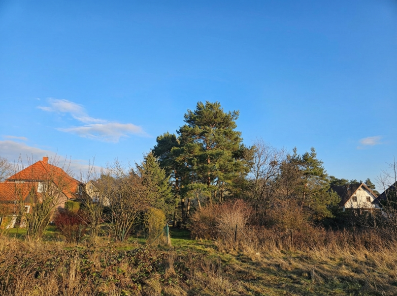 Ein besonderes Merkmal ist der gewachsene Baumbestand: Alte Kiefern und natürliches Grün prägen die Atmosphäre und geben dem Grundstück einen naturnahen Charakter – ideal für alle, die sich ein Zuhause mit „Ankommen-und-Durchatmen“-Gefühl wünschen. Einige dieser Bäume müssen je nach Positionierung des Neubaus jedoch gerodet werden. Durch die Lage am Sonnenberg wirkt die Umgebung angenehm offen und leicht erhaben – der Name ist hier tatsächlich Programm: Man hat das gute Gefühl, ein Stück „oben“ zu wohnen, mit mehr Weite, mehr Ruhe und mehr Rückzug.