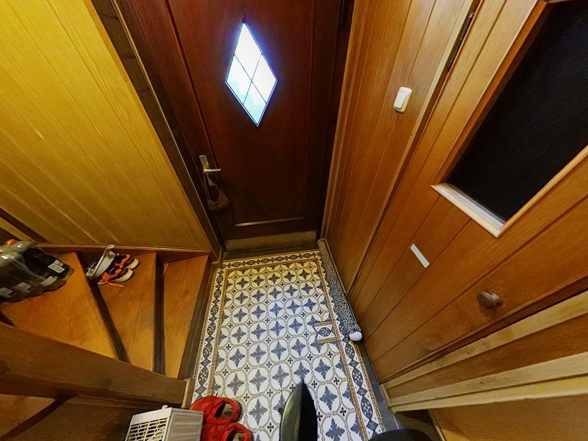 Schon beim Betreten des Hauses wird man von der Geschichte des Gebäudes empfangen: Der Eingangsbereich besticht durch die originalen, charaktervollen Betonfliesen aus der Bauzeit. Eine gut erhaltene alte Holztreppe führt Sie durch die verschiedenen Ebenen des Hauses und unterstreicht den nostalgischen Flair.