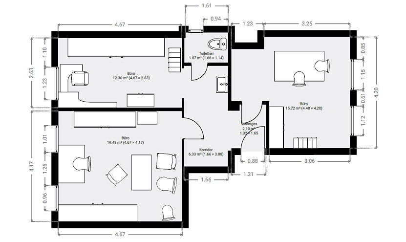 Gewerbeeinheit München-Lehel – sanierungsbedürftig – 3 Zimmer