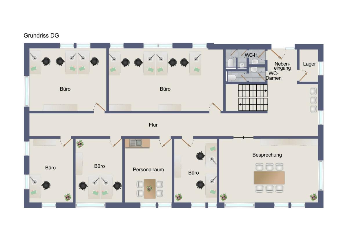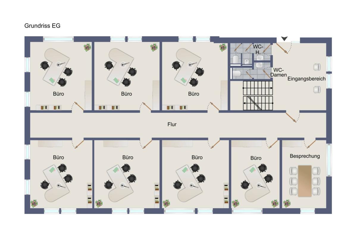 - 8 Büros bzw. Besprechungsräume im Erdgeschoss