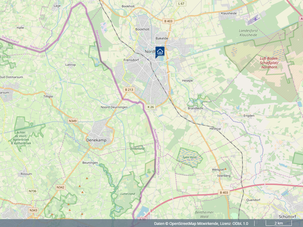 In der charmanten Stadt Nordhorn, einer großen Mittelstadt im äußersten Südwesten Niedersachsens, direkt an der Vechte gelegen und nahe der niederländischen Grenze, befindet sich unsere exklusive Büro- bzw. Praxisimmobilie. Als Teil der Euregio, bietet Nordhorn eine ideale Umgebung für Unternehmen und Freiberufler. Mit etwa 55.242 Einwohnern bietet die Stadt ein angenehmes Flair und eine gute Infrastruktur.