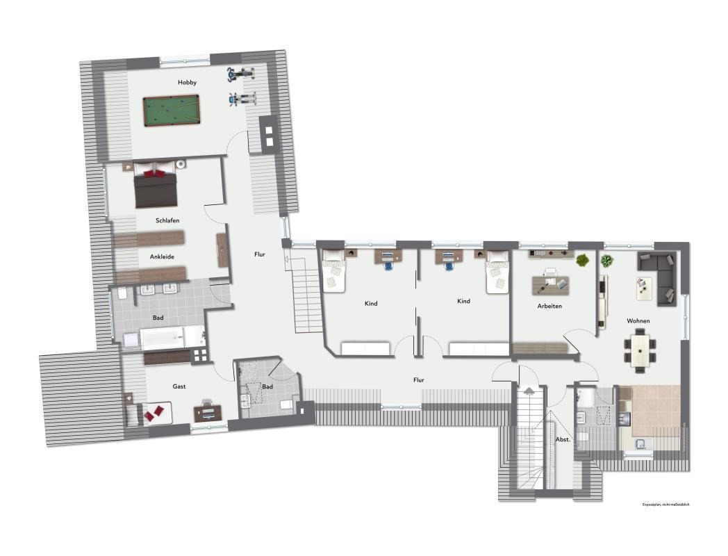 Das Anwesen bietet zusätzlich außergewöhnlich viel Stauraum im nahezu vollständig unterkellerten Bereich. Der Keller bietet vielseitige Nutzungsmöglichkeiten, sei es als Werkstatt, Hobbyraum oder zur Installation einer eigenen Sauna – hier ist der Raum für Ihre Wünsche und Ideen nahezu unbegrenzt. Mehrere Bäder, die mit modernen und hochwertigen Elementen ausgestattet sind, vervollständigen das exquisite Angebot dieser Immobilie. Jedes Detail wurde mit höchster Präzision gewählt, um höchsten Ansprüchen an Ästhetik und Funktion gerecht zu werden. Das voll ausgebaute Dachgeschoss bietet eine weitere Ebene an Wohnraum mit vielen Schlafzimmern und den Bädern.
