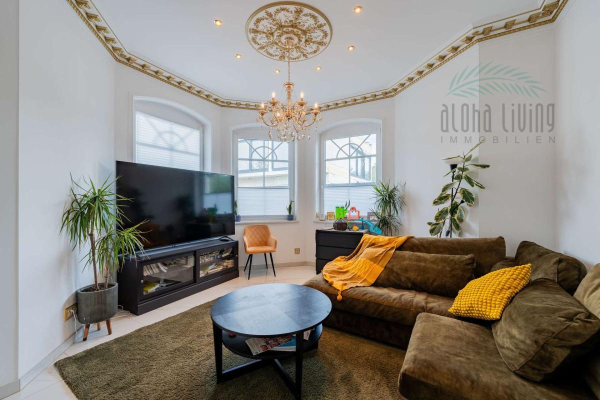- Ein Wohngefühl wie im Palast – über 3,40 m hohe Decken, ein herrschaftlicher Empfangsbereich, achteckige Gewölbe in Schlafzimmern, vergoldete Stuckverzierungen und hoher Lichteinfall erschaffen ein unvergleichliches Ambiente