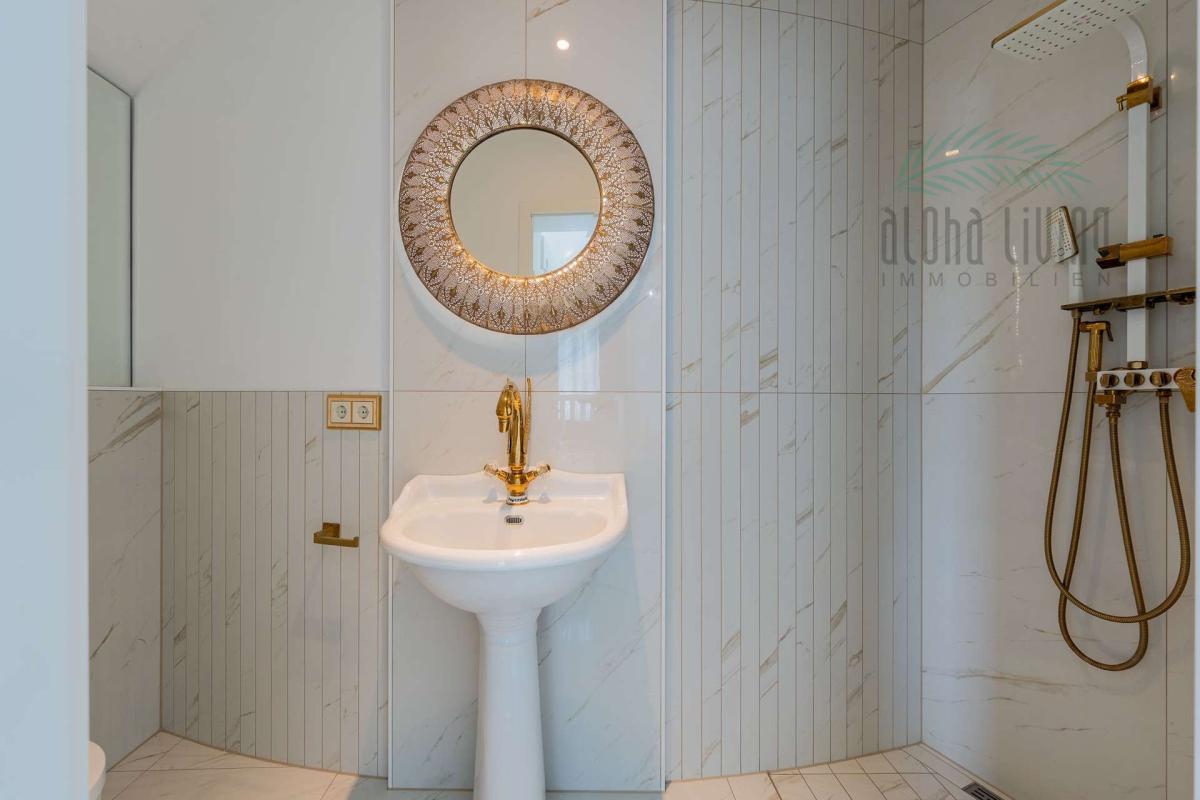 - Wellness-Rituale umhüllt von Luxus-Glamour: jedes deiner drei Bäder ist ein exklusiver Rückzugsort für persönliche Rituale mit goldene Messingarmaturen, schwarzem Marmor-Design, großen Duschen oder wie wäre es mit einem Whirlpool?