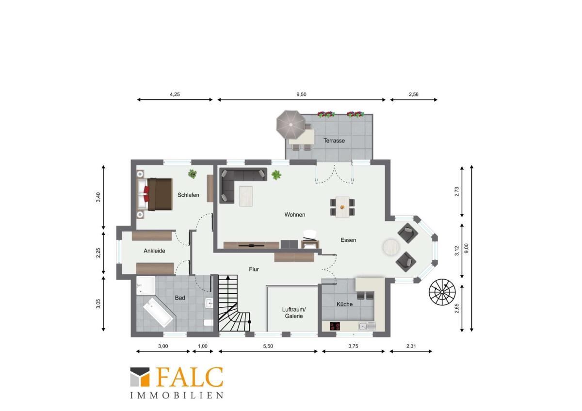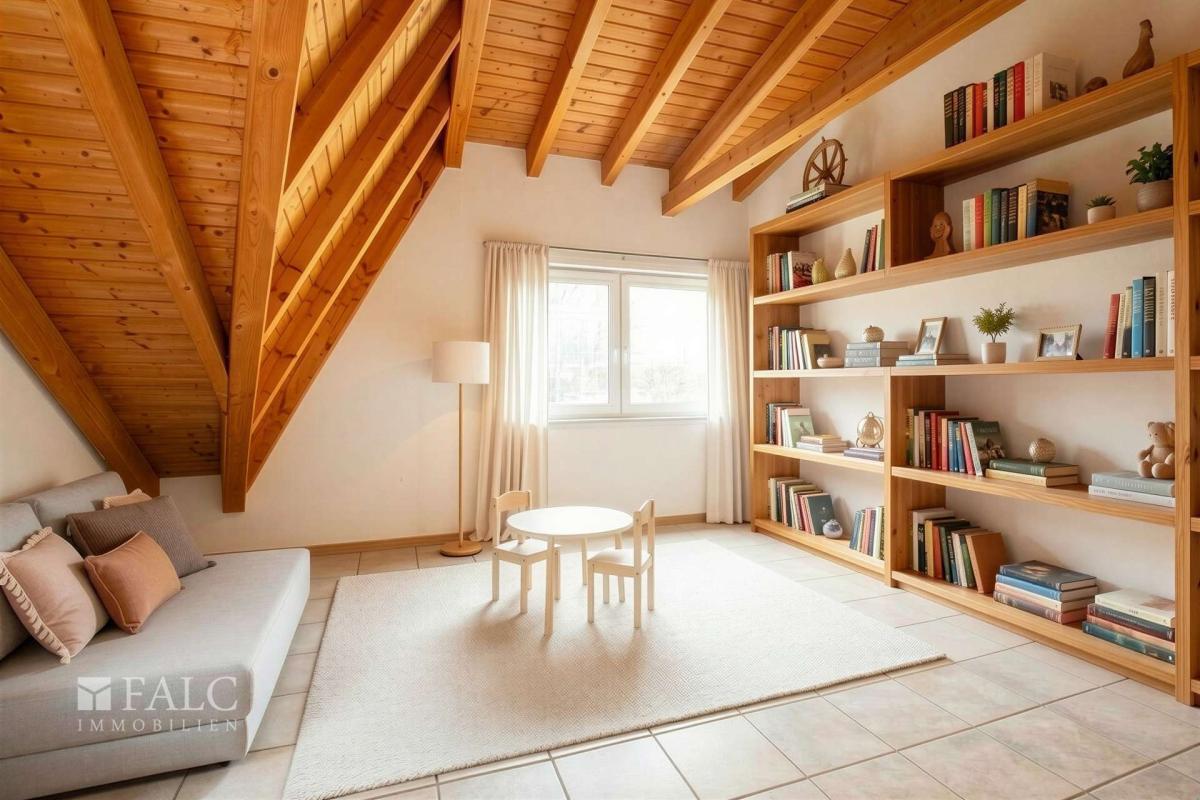 Im Dachgeschoss des Wohnhauses befindet sich die ca. 97 m² große Einliegerwohnung. Diese ist vom Obergeschoss aus über die Treppe in der Galerie erreichbar.