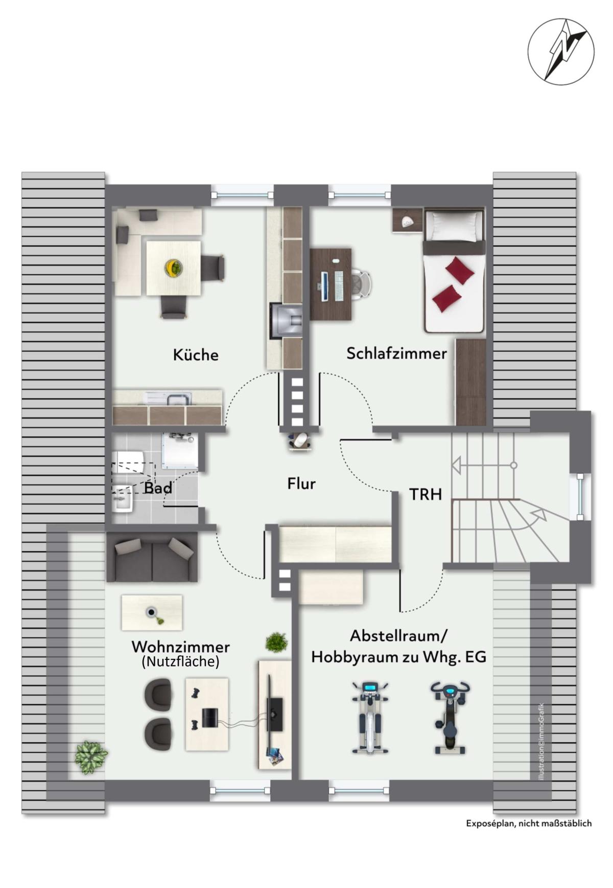 Wohnung DG: 1 ZKB, ca. 38 m² Wohn-/Nutzfläche, vermietet seit 2017, mtl. Kaltmiete: 250,00 €