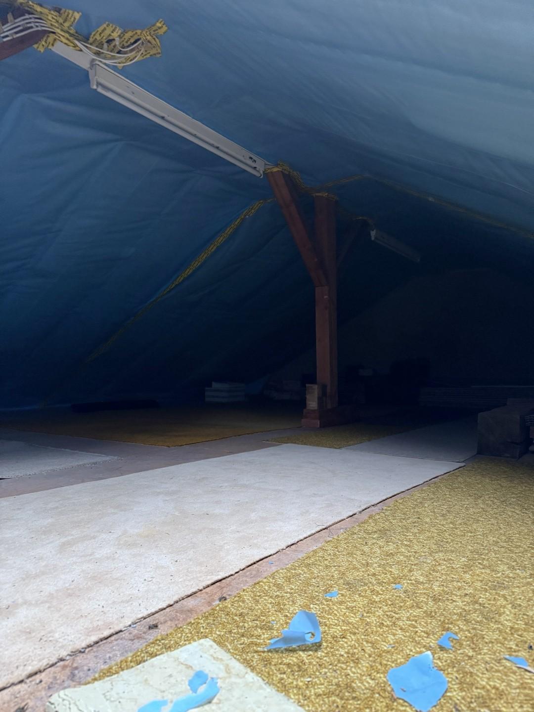 Der Spitzboden ist über eine Ausziehtreppe erreichbar. Aufgrund der geringen Stehhöhe dient er überwiegend als zusätzlicher Stauraum, er ist auch bereits isoliert.