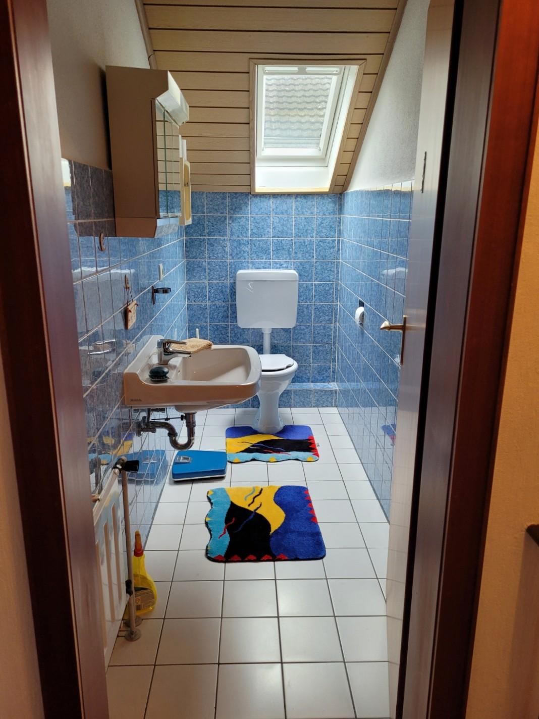 Im Dachgeschoss befinden sich eine separate Toilette sowie ein modernisiertes Badezimmer. Zudem stehen hier drei bis vier Schlafzimmer zur Verfügung. Das ursprünglich als Wohnzimmer geplante Zimmer mit Zugang zum Balkon lässt sich mit geringem Aufwand teilen, sodass ein viertes Schlafzimmer entstehen kann.