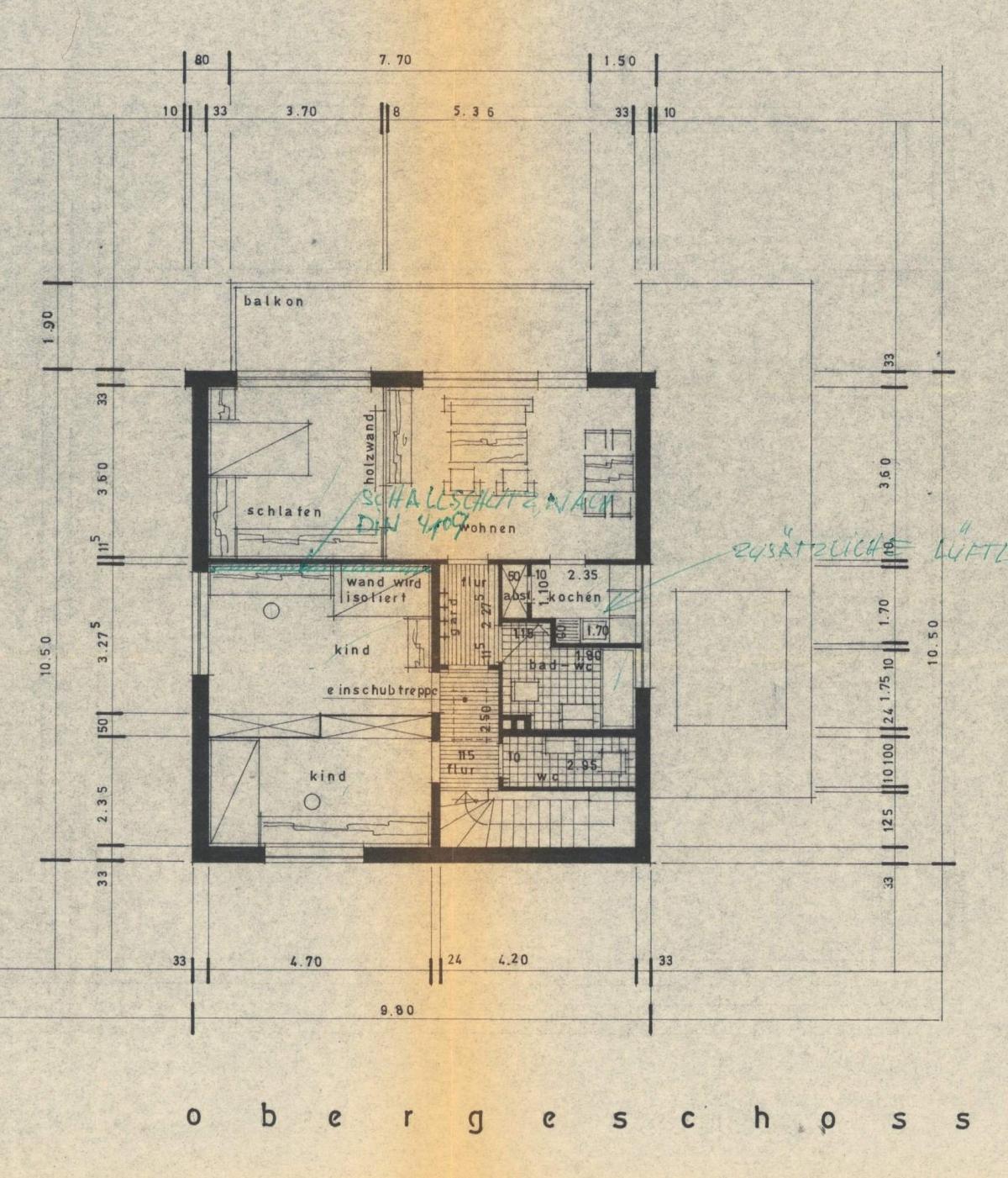 Das ursprünglich im Jahr 1973 erbaute Einfamilienhaus wurde so konzipiert, dass auch eine Nutzung durch zwei getrennte Parteien möglich wäre. Dies lässt sich noch heute an den Raumbezeichnungen in den Grundrissen erkennen. Tatsächlich wurde das Haus jedoch überwiegend als klassisches Einfamilienhaus genutzt. So wurde beispielsweise die frühere Trennwand zwischen Wohnzimmer und Elternschlafzimmer im Erdgeschoss entfernt, wodurch ein großzügiger Wohn- und Essbereich entstanden ist.