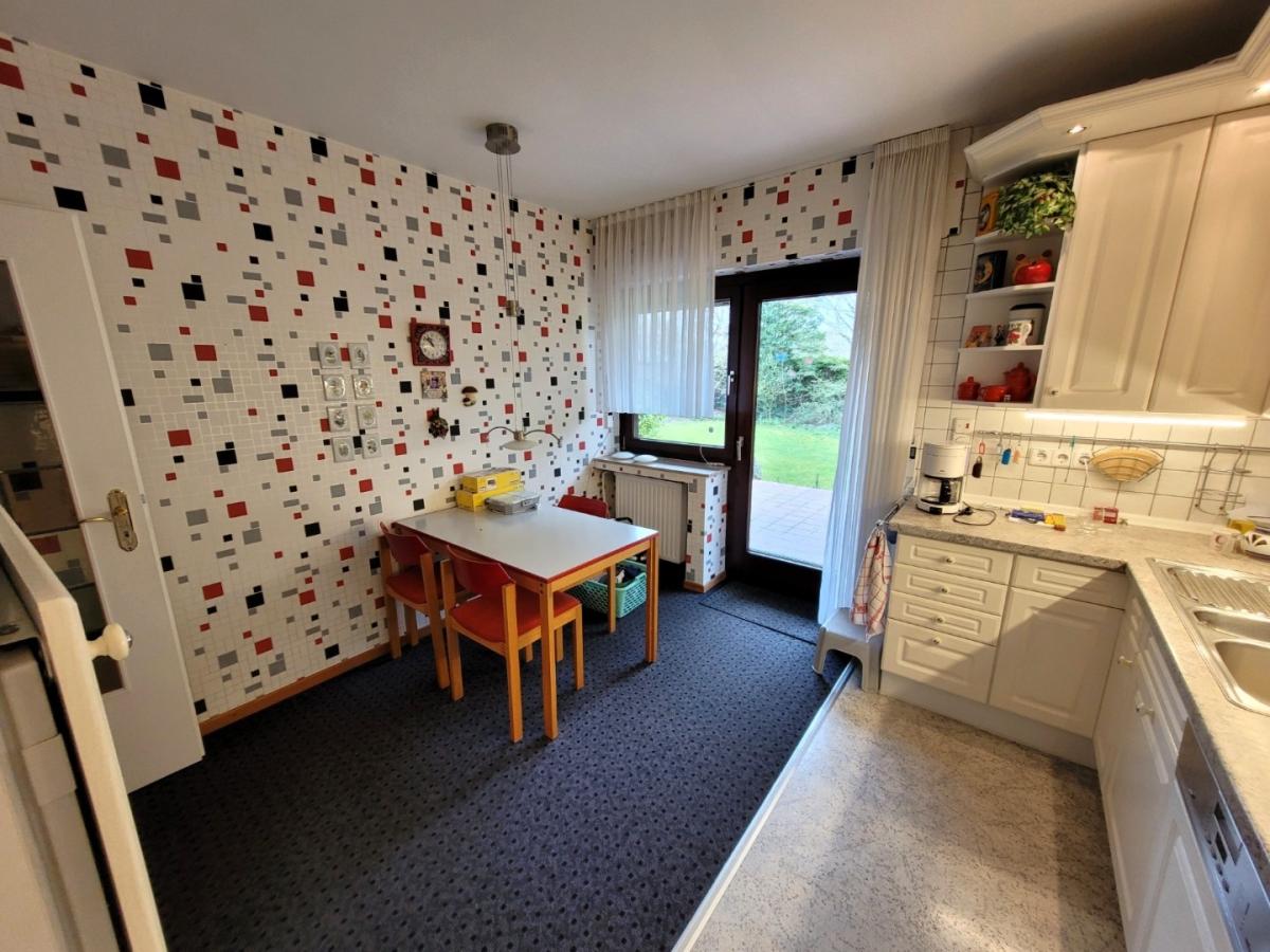 Die separate Küche mit angrenzendem kleinen Abstellraum befindet sich direkt neben dem Wohnbereich. Von hier aus gelangt man auch auf die nordöstlich ausgerichtete Terrasse, auf der sich der Feierabend sowie die Abendsonne gut genießen lassen.