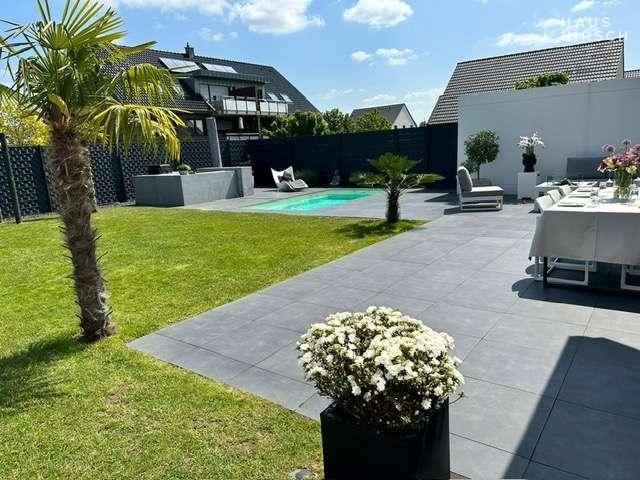 Das ca. 512 m² große Grundstück wurde mit viel Liebe zum Detail gestaltet und präsentiert sich als private Wohlfühloase. Der großzügige Garten mit Pool, sonniger Terrasse und üppiger Bepflanzung lädt zum Entspannen, Abschalten und Genießen ein. Ob ruhige Stunden im Grünen oder gesellige Abende mit Familie und Freunden – die exklusive Outdoor-Küche macht den Außenbereich zu einem echten Highlight und verlängert den Wohnraum ins Freie.