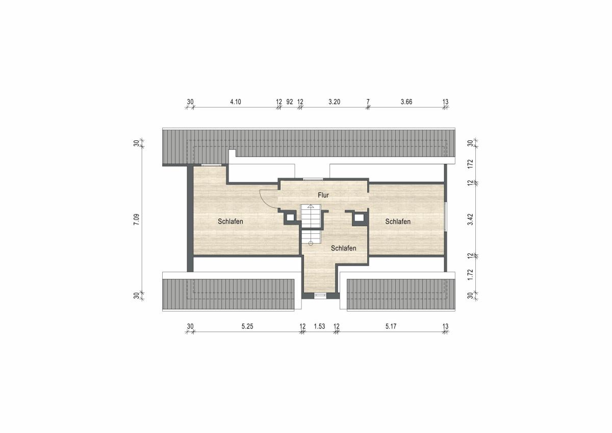 Das Obergeschoss beherbergt zwei Schlafzimmer und ein Ankleidezimmer. Durch die Modernisierung des Schlafzimmers konnte die komplette Deckenhöhe in der Spitze auf beeindruckende 310 cm erhöht werden, wodurch ein besonders großzügiges Raumgefühl entstanden ist. Der Einbau einer zusätzlichen Dachgaube mit südlicher Ausrichtung sorgt zudem für deutlich mehr Tageslicht und eine angenehm lichtdurchflutete Atmosphäre. Hochwertige massive, 30 mm starke Eichenholzdielen unterstreichen den hochwertigen Charakter dieses Bereichs.