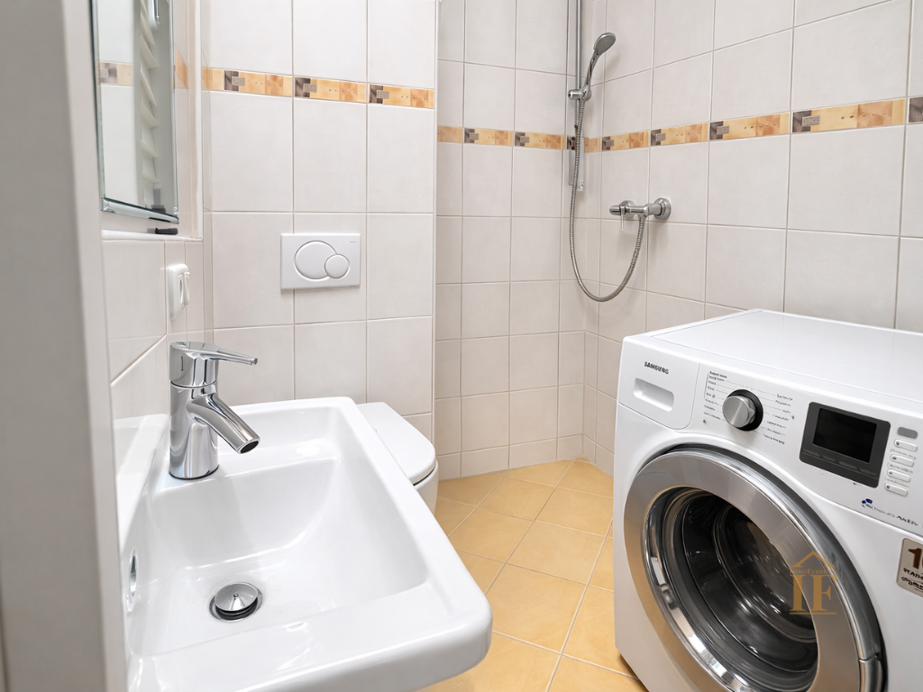 Beim Betreten der Wohnung gelangen Sie in den Eingangsbereich, von dem aus alle Räume bequem zugänglich sind. Direkt auf der rechten Seite befindet sich das Tageslichtbadezimmer, das mit einer Badewanne ausgestattet ist und durch das Fenster eine freundliche und helle Atmosphäre bietet.